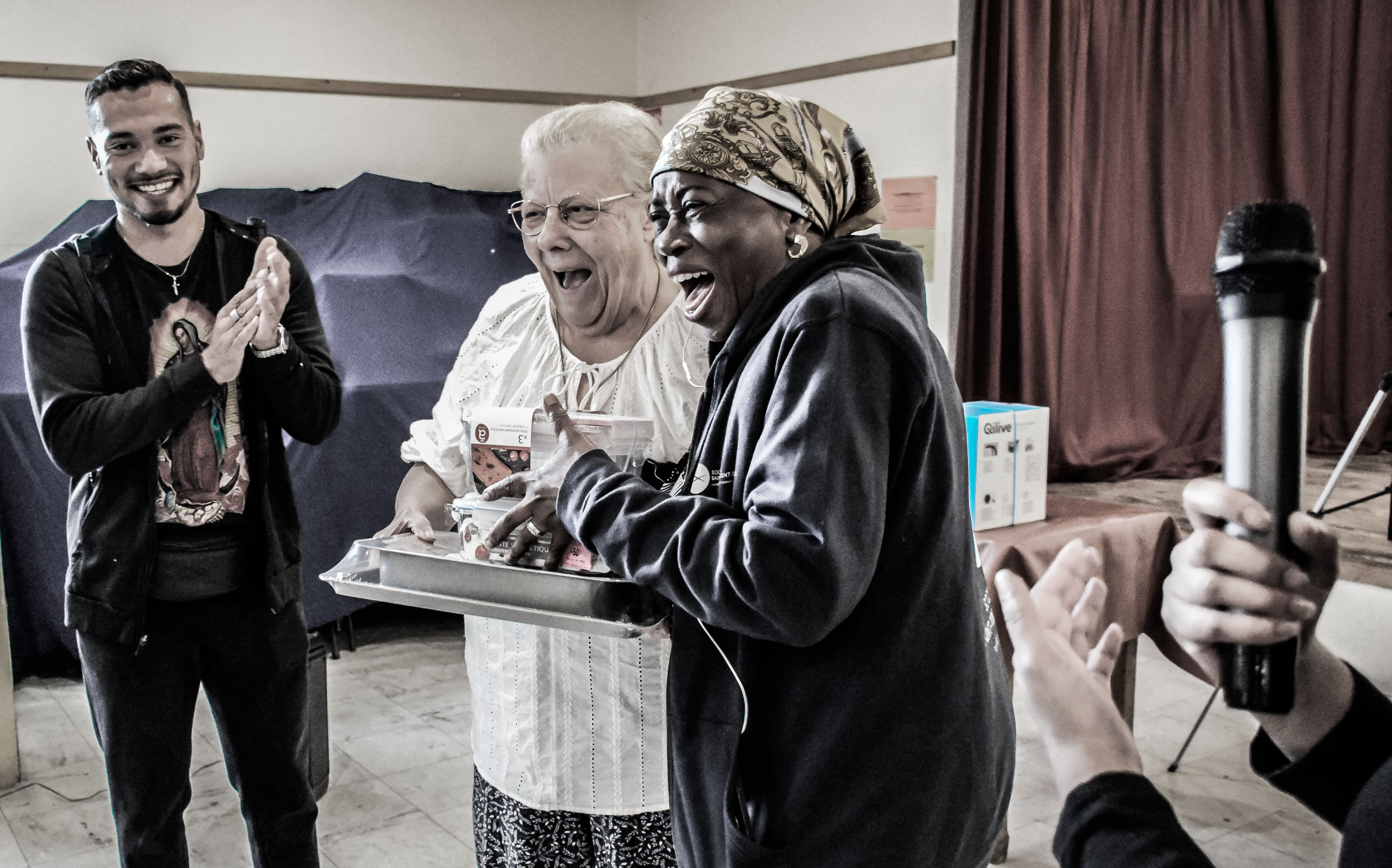 Captant le sourire, la joie dans le regard et les gestes complices, Angela saisit sur le vif des moments de fraternité purs, révélateurs de cet accompagnement cher aux bénévoles de la Société de Saint-Vincent-de-Paul. Sur ses clichés en noir et blanc, rehaussés d’une unique couleur, la jeune artiste montre au public les instants chaleureux partagés lors de rencontres entre personnes accompagnées et bénévoles.