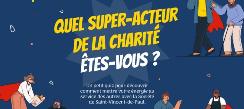 Cette année à l’occasion de notre campagne nationale de collecte et de recrutement de bénévole, la Société de Saint-Vincent-de-Paul a proposé un nouvel outil : le quiz Super acteur de charité ! Il suffit de prendre deux minutes pour répondre à cinq questions en ligne.
